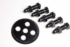 This Radium bulkhead plate kit is great when multiple 6AN bulkhead fittings need to pass through a wall, floor, etc. The plate gives a finished look and is necessary when mounting through a soft surface, such as carpet. The bulkhead plate acts as a large washer and is held in place by the bulkhead fittings.