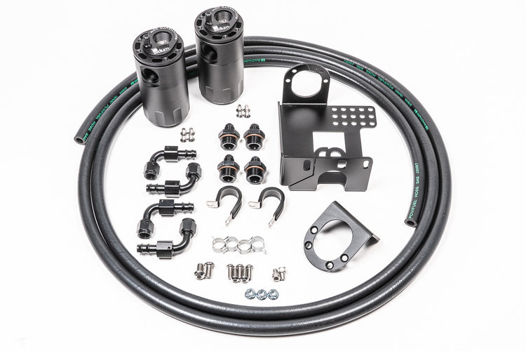 20-0337-FLFor the ultimate in engine protection, Radium Engineering recommends the Dual Catch Can Kit. This kit utilizes both the CCV and PCV catch can kits. |