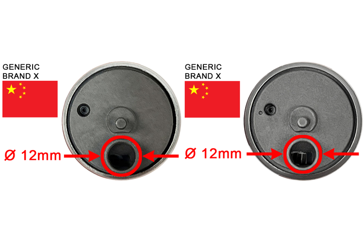 Radium Engineering uses a fuel pump strainer compatible with 1-3 pumps in many products. These are found in fuel hangers such as: MK4 Supra, FD3S RX-7, Civic Type-R, Early Nissan, R32 GT-R, 08-17 GM, C8 Corvette, etc. as well as universal products such as FCST-X, MPFST, MPFST-R, etc. The provided fuel pump base with those products is for 11mm OD pumps which include Bosch, Denso, Ti Automotive, Walbro, etc. This 13-1187 fuel filter base adapter permits the use of 12mm OD brushless pumps that are made in China. These pumps have the same ID inlet as the other aforementioned pumps. However, the die casted OD of their inlet is slightly larger. This prevents a press-fit for proper mounting and filtration when using the standard Radium Engineering fuel pump strainer.