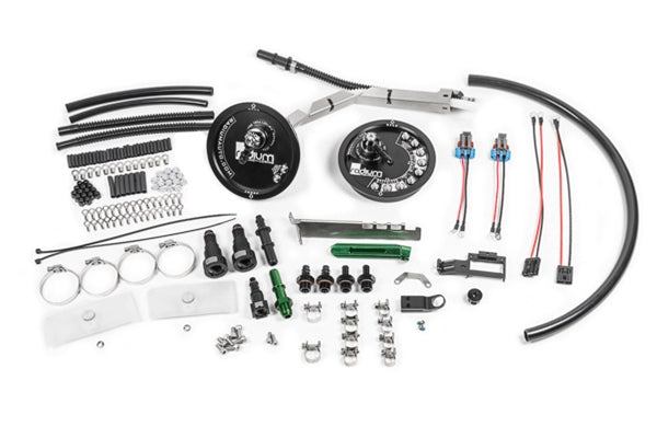 These kits provide all necessary plumbing to and from the engine including a fuel filter, fuel pressure regulator, fuel lines, adapter fittings, and mounting hardware.