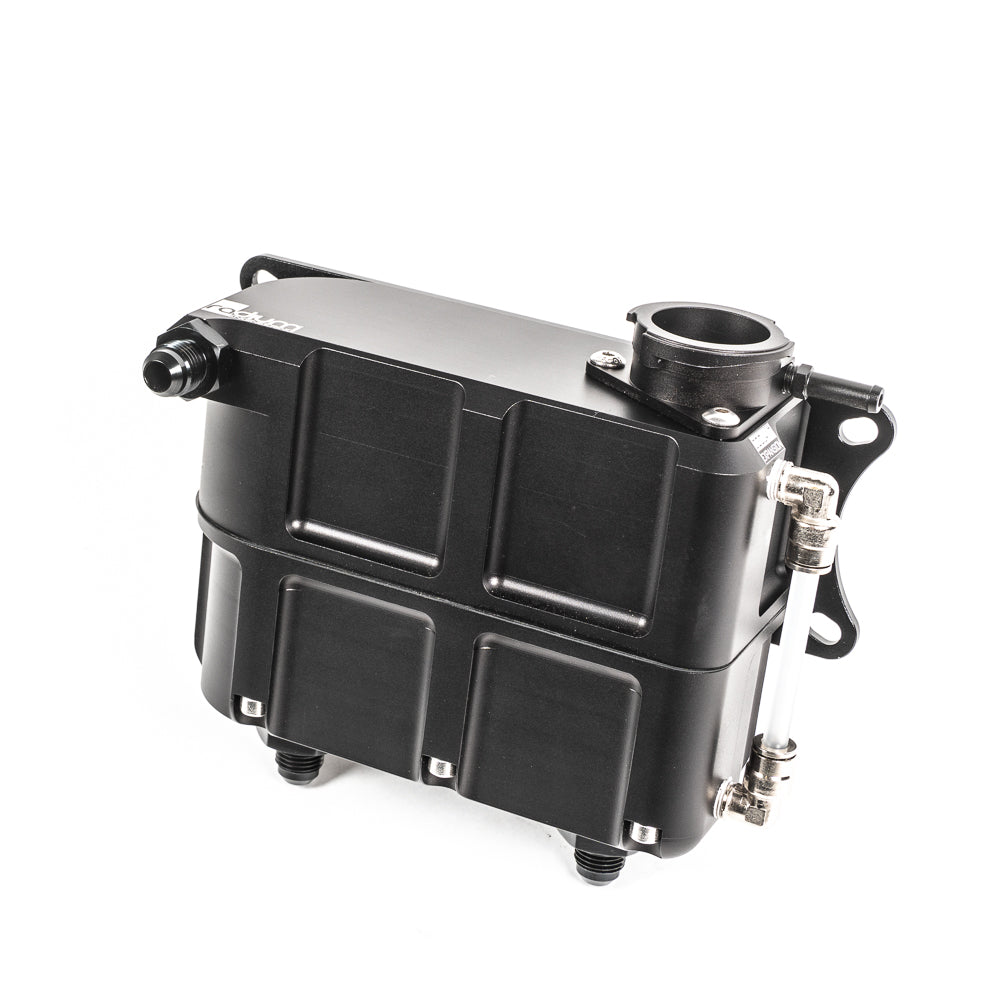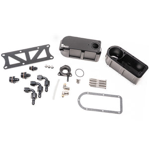 Coolant expansion tanks are necessary for proper air bleeding in applications that utilize a rear mounted radiator or a low mounted radiator such as a V-Mount. However, expansion tanks are also valuable if integrated in a common radiator setup. To allow heat expansion, traditional coolant systems require air to be present in the top portion of the radiator during low temperatures. A coolant expansion tank permits the radiator to be 100% filled with coolant in all conditions.