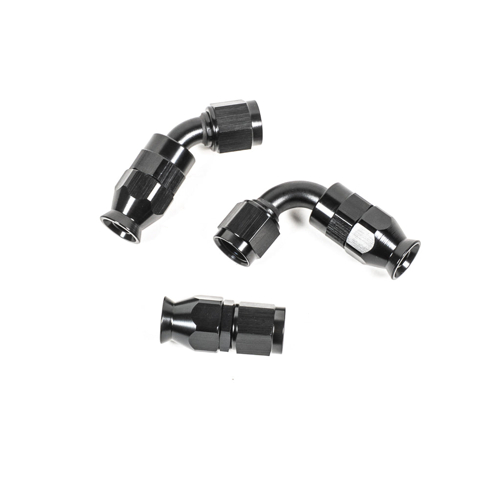 Additional PTFE Hose EndsPTFE hose ends are specific to PTFE hose and cannot be used with rubber hose. Each fitting is machined from aluminum and anodized black. All hose ends are swiveling type. Radium does not offer any other PTFE hose end sizes or angles other than what is listed on this page. If another size or angle is needed, you can use any PTFE specific hose ends from any other supplier. |