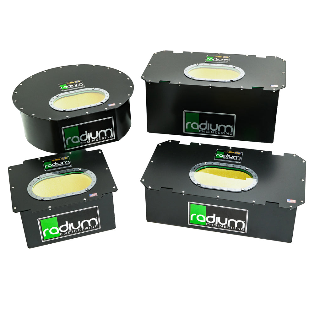 A competition grade fuel cell provides maximum performance and safety for high performance vehicles. RA-series fuel cells are designed and manufactured by Radium Engineering to meet top safety requirements set forth by the worldwide safety organizations FiA and SFI. To learn why a certified fuel cell is superior to a fabricated tank, CLICK HERE.