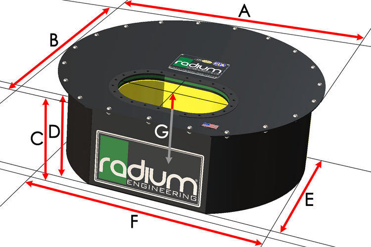 Radium currently offers five different sizes of fuel cells. Custom sizes are NOT available. Select the size that best fits your application, usage situation, and space allowed in the vehicle. The manufacturing process for these fuel cell bladders inherently require large tolerances creating a variance in physical size. The volumes listed below are the expected ranges for each bladder.