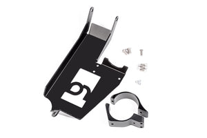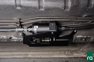Vehicle mounting bracket and 2pc clamp for installing a Radium Engineering fuel filter in the Mitsubishi EVO 7-8-9. Filter and lines are not included.