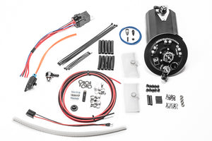 To clear the OEM fuel pump cover plate, the 8AN ORB threaded feed port features a preinstalled low profile 8AN male fitting.