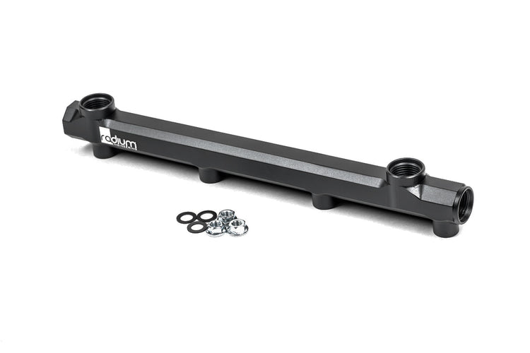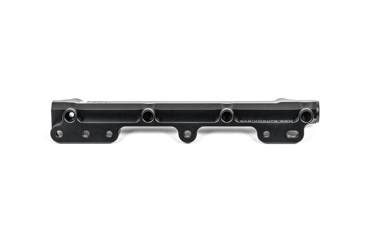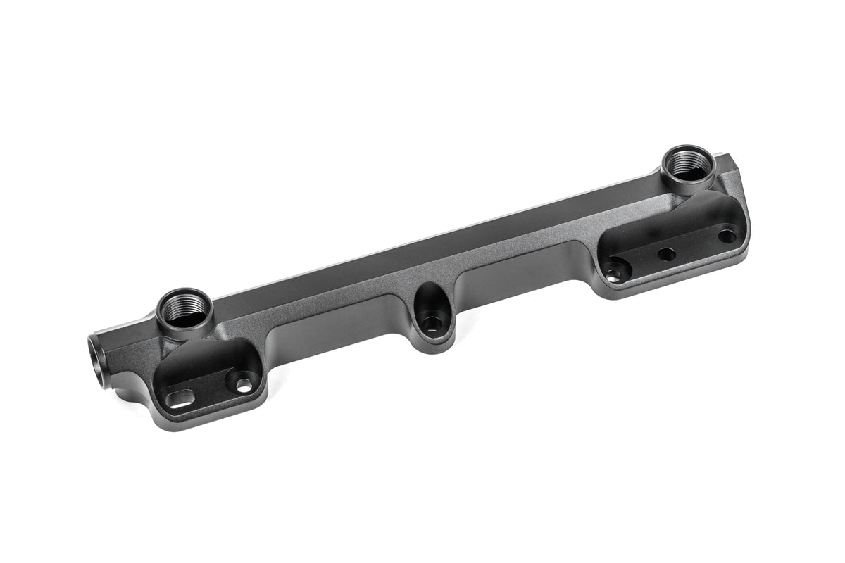 Manufactured with a large internal bore, the fuel rail can support all necessary engine power requirements. They are CNC machined from 6061 aluminum, anodized, and laser etched for a high quality surface finish. Like the OEM fuel rails, the injector bores are 11mm ID so factory injectors, or any equivalent aftermarket injector, can be used.
