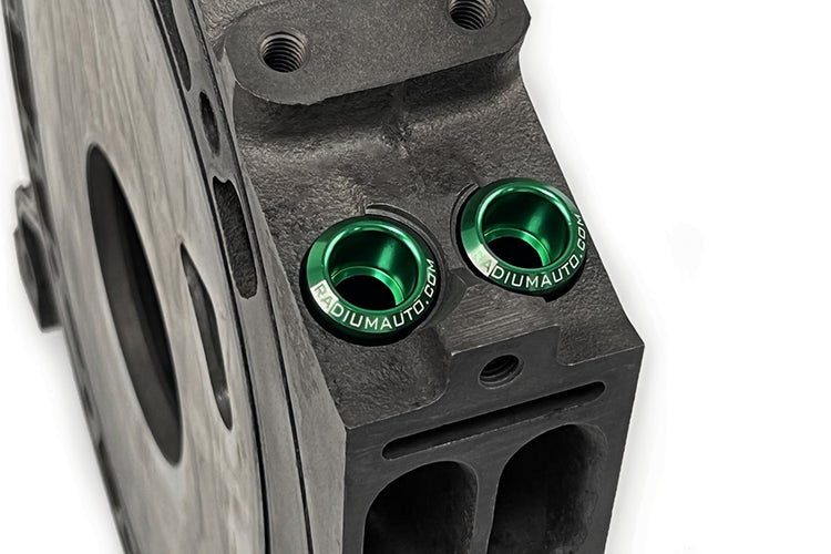The three 8AN ORB ports are compatible with these fittings HERE. The extra center port allows additional fuel system accessories such as the OEM fuel temperature sensor (using 14-0421), a pressure transducer, Radium fuel pulse damper (shown below) etc.