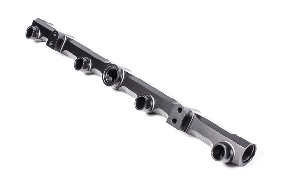 20-0361 Fuel Rails GM LS7Manufactured with a large 0.69' internal bore, the fuel rails can support all necessary engine power requirements. They are CNC machined from extruded 6063 aluminum, black anodized, and laser etched for a high quality surface finish. All end ports are machined with 8AN ORB (3/4-16 female) threads. The lower center ports can be used for optional adapters and are also tapped with 8AN ORB (3/4-16 female) threads. For a list of 8AN ORB adapter fittings, go HERE. FUEL INJECTOR COMPATIBILITY This fuel rail is compatible with factory or OEM equivalent fuel injectors. This means that the injectors installed must match the OEM height and o-ring dimensions. If upgrading fuel injectors, consult your aftermarket injector supplier for details. Radium Engineering cannot specify any further injector dimensions other than stating "OEM equivalent". PORTS AND FITTINGS The fuel rail ports are tapped for 8AN ORB fittings.