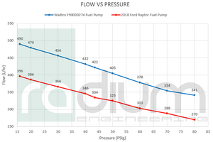 Some of the pumps available outflow the OEM Ford Raptor fuel pump by more than 23%. The OEM fuel pump is repurposed to keep the surge tank full with excess returning back to the OEM fuel tank. The new FSTR-RA pump will now feed the engine and is regulated by the integrated FPR on the surge tank. This pump keeps supplying fuel, even if the OEM fuel pump becomes momentarily starved.