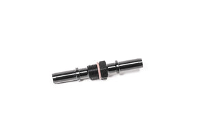 These anodized aluminum bulkhead fittings feature a barbed hose connection on the underside and a male AN flare connection on the top side. Threads are AN ORB (o-ring boss) for use in various Radium hangers, or any ORB threaded surface.
