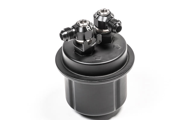 The engine bay mounted fuel filters in popular Honda cars from the 80s and 90s use metric threaded banjo fittings. This low profile swivel fitting adapts to 6AN male.