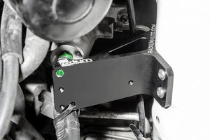 The 6061 extruded billet aluminum brace reduces firewall flex for a more positive pedal feel. It mounts to 3 pre-existing threaded holes in the engine bay and requires no permanent vehicle modification. Preload is adjusted with the anodized aluminum green bolt then locked in place with the stainless steel jam nut. Installation is simple and takes less than 30 minutes.