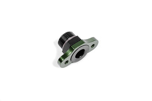 These anodized billet 6061 aluminum adapter fittings allow an OEM fuel pressure regulator (FPR) or fuel pulse damper (FPD) to be reused in an application other than the OEM fuel rail. All fittings permit the unit to be clocked into the proper position.
