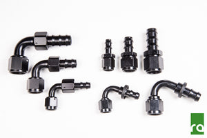 PushLok hose ends are constructed from black anodized aluminum and can be reused. Several hose sizes and hose end angles are available.