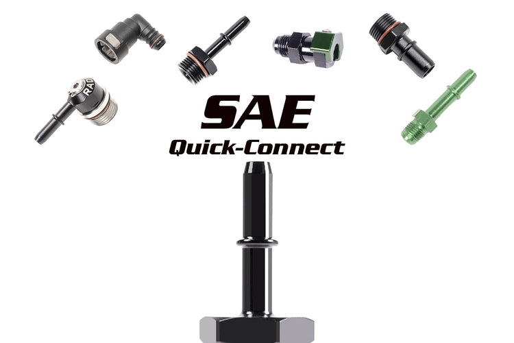 These adapter fittings are available in a variety of configurations. They push-on and secure to most modern USA, European, Japanese, etc. fuel injection systems and are used to convert an OEM SAE Quick Connect connection. Scroll down for a photo of each part number.