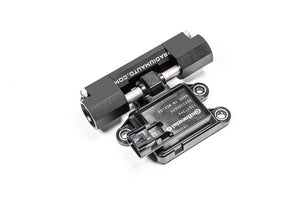 The Radium Engineering adapter splits the fuel flow into an auxiliary passage parallel to the sensor. Because the flex fuel sensor is directly inline with the fuel flow path, it will read the incoming ethanol content at high and low engine demands. Traditionally this additional flow path could be accomplished with hose and y-adapter fittings. However, the Radium Split-Flow Flex Fuel Sensor Adapter is less complicated, considerably compact, and provides a mounting solution for the popular GM 13577429 flex fuel sensor.