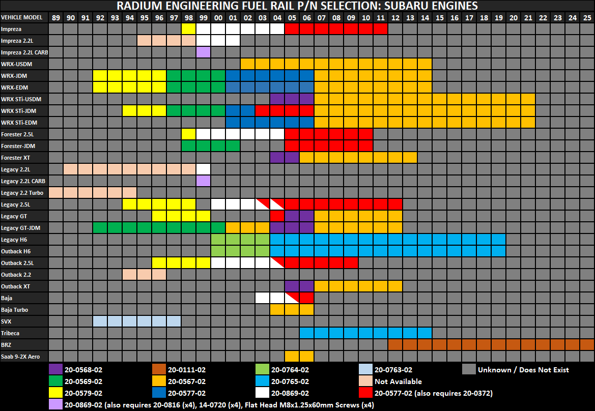 - Reference the chart below to be sure the proper fuel rails are ordered.