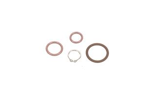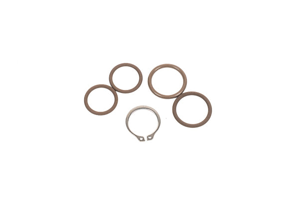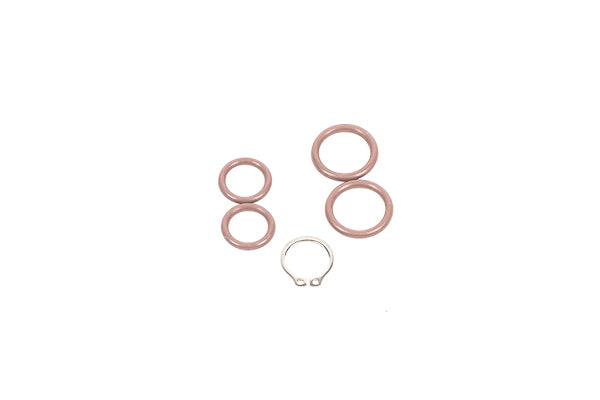 These kits contain the necessary parts to service a low profile swivel fitting. The lower stainless and upper anodized aluminum halves are held together with an external retaining ring ("snap-ring"). A set of external snap ring pliers are required to service these. Externally each fitting with have an o-ring on the lower threads (or crush washer for metric fittings). Internally each fitting will have two o-rings that the swivel seals and pivots on. These kits include parts to service one fitting.