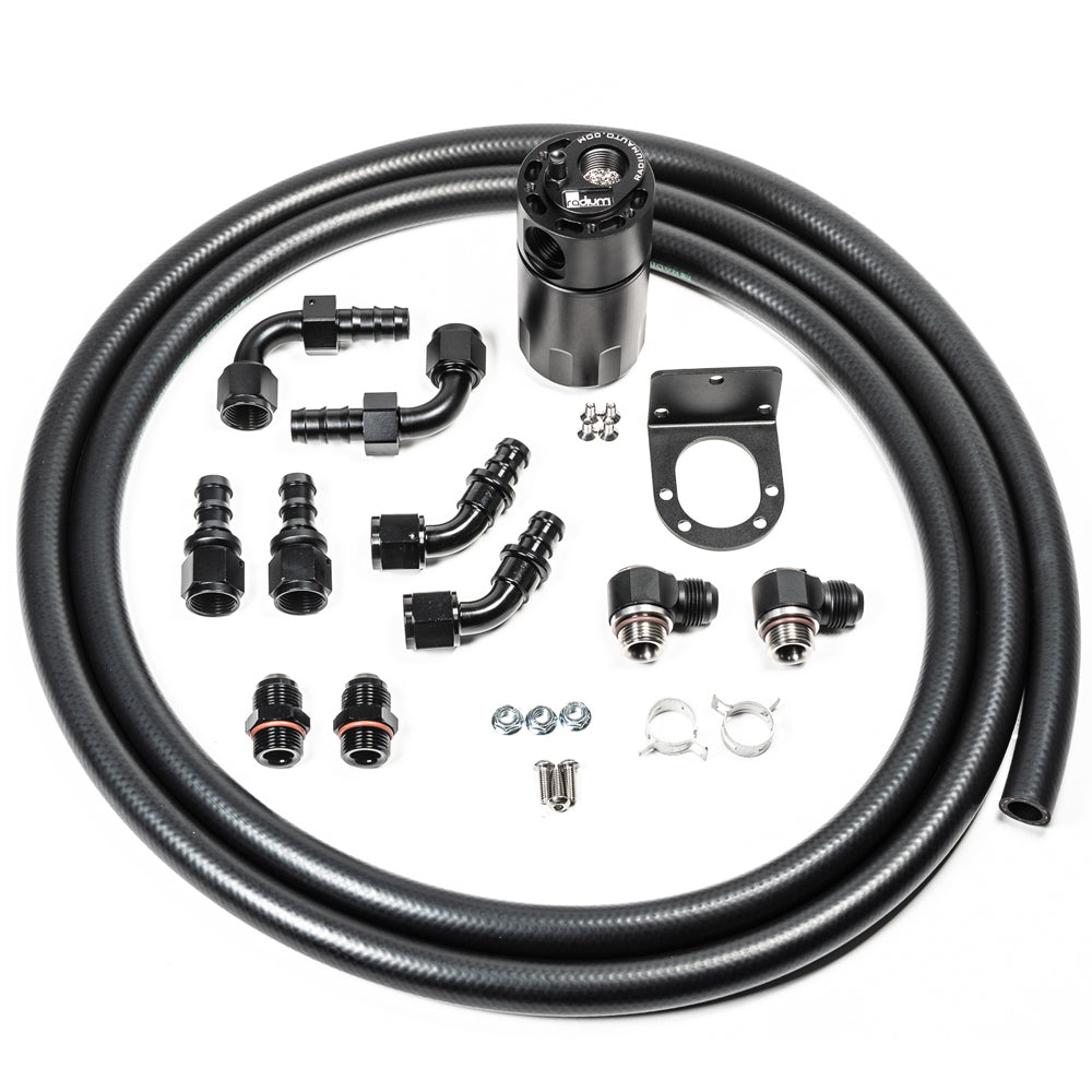 Radium Engineering offers bolt-in oil catch can kits for many different applications. For vehicles that are not covered, these universal kits are the next best option. Each kit includes Radium Engineering's patented universal Fluid Lock® oil catch can with universal mounting bracket, a length of PCV hose, a selection of adapter fittings and hose-ends.