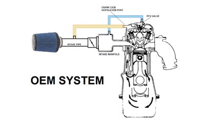 Shown below are examples of a common OEM breather system (PCV and CCV) and the same system with catch cans installed.
